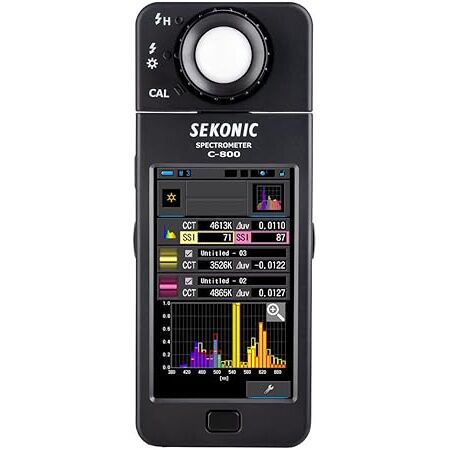 El Sekonic C-800 SpectroMaster es el medidor de color definitivo para cineastas, fotógrafos y técnicos de iluminación que buscan resultados fieles y consistentes. Su capacidad para medir fuentes de luz LED, HMI, fluorescente, tungsteno, luz natural y flash lo convierte en una herramienta versátil para cualquier entorno de producción.