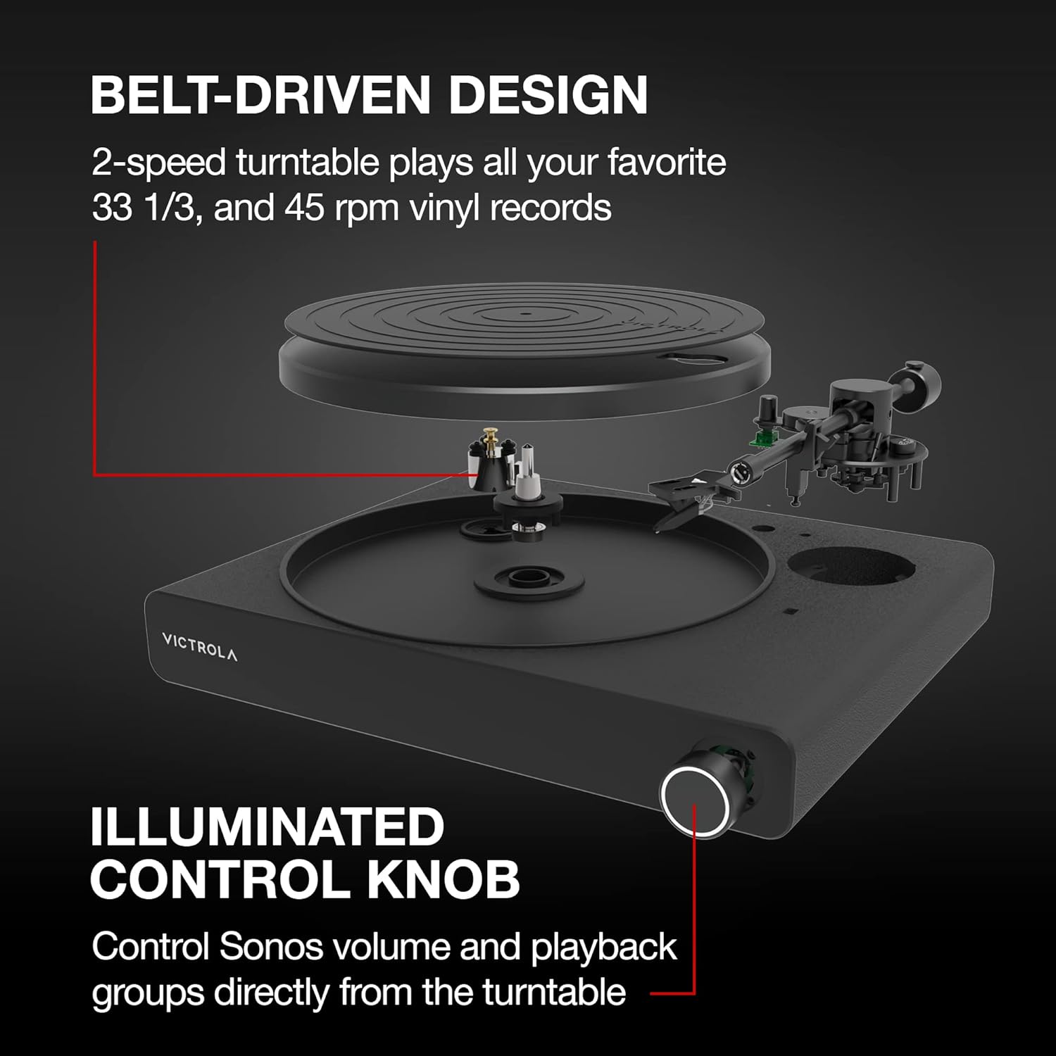 Victrola Stream Onyx - Tocadiscos de vinilo de 33-1/3 y 45 RPM